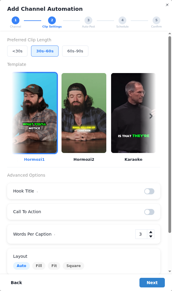 The settings you choose determine the quality, quantity, and style of your clips. Here are the key ones and our recommendations: