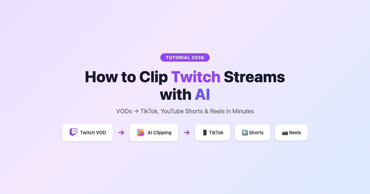 Twitch clipping has evolved way beyond the built-in Clip button. In 2026, AI tools can automatically scan your VODs, find the best highlights, add captions, and format them for TikTok, YouTube Shorts, and Reels — no manual editing required.