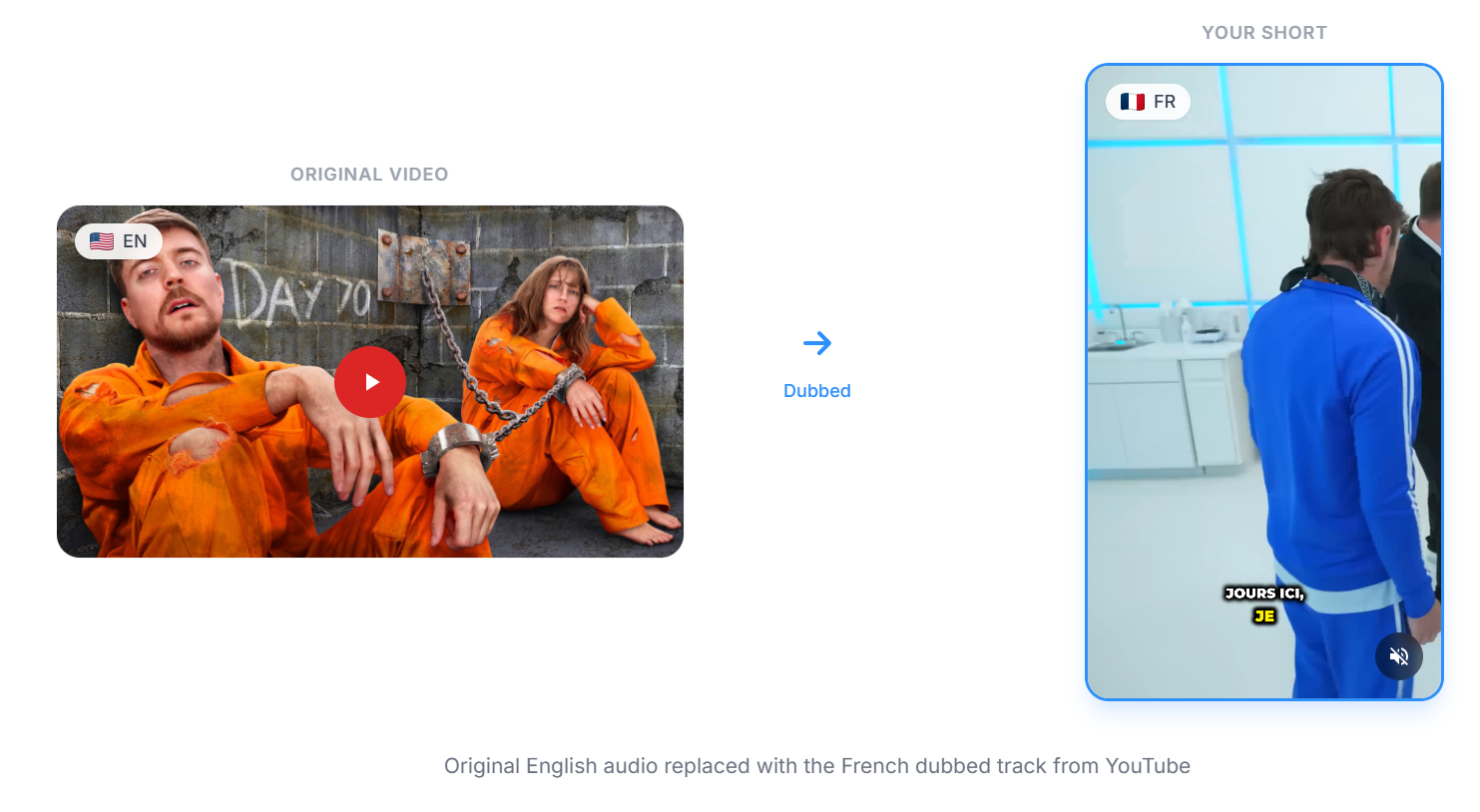 What if you could take a single MrBeast video and turn it into viral Shorts in Hindi, Spanish, French, Portuguese, and many more languages — all without recording a single word?